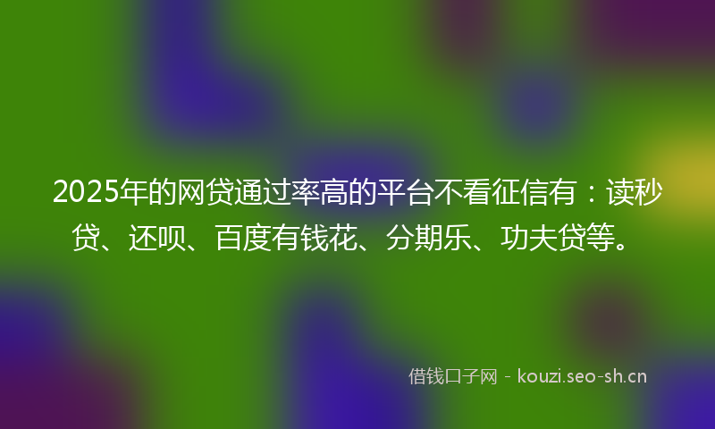 2025年的网贷通过率高的平台不看征信有:读秒贷、还呗、百度有钱花、分期乐、功夫贷等。