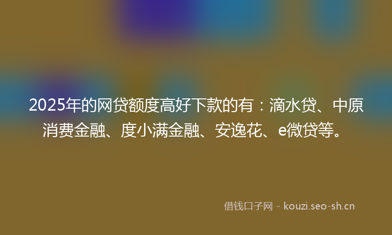 2025年的网贷额度高好下款的有:滴水贷、中原消费金融、度小满金融、安逸花、e微贷等。
