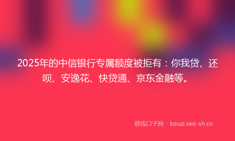 2025年的中信银行专属额度被拒有:你我贷、还呗、安逸花、快贷通、京东金融等。