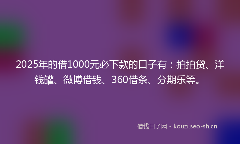 2025年的借1000元必下款的口子有:拍拍贷、洋钱罐、微博借钱、360借条、分期乐等。