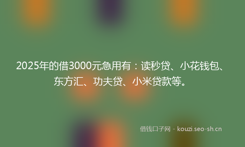 2025年的借3000元急用有:读秒贷、小花钱包、东方汇、功夫贷、小米贷款等。
