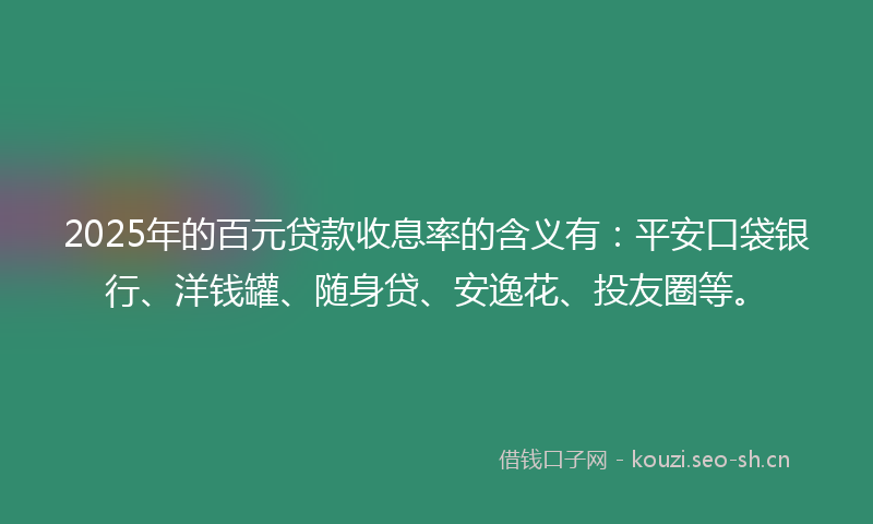 2025年的百元贷款收息率的含义有:平安口袋银行、洋钱罐、随身贷、安逸花、投友圈等。