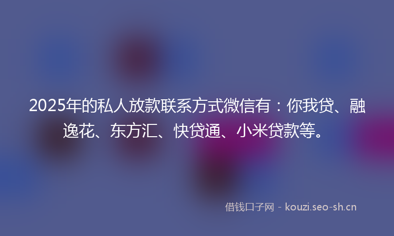 2025年的私人放款联系方式微信有:你我贷、融逸花、东方汇、快贷通、小米贷款等。