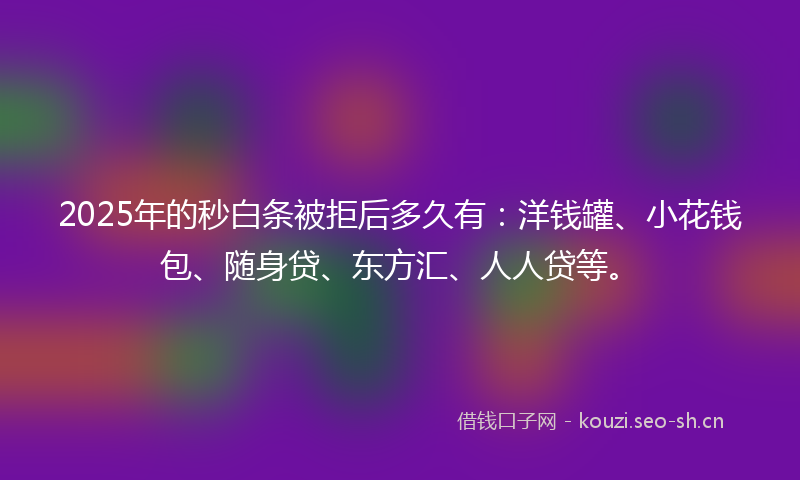 2025年的秒白条被拒后多久有:洋钱罐、小花钱包、随身贷、东方汇、人人贷等。