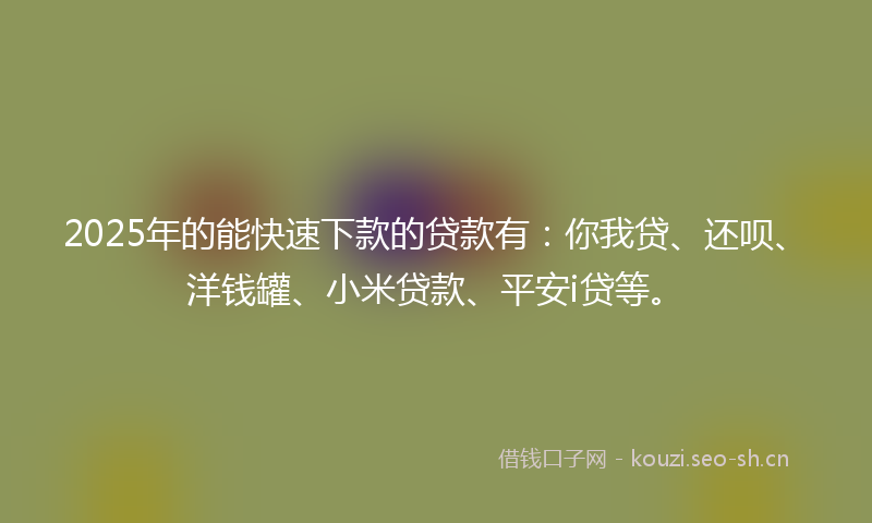 2025年的能快速下款的贷款有:你我贷、还呗、洋钱罐、小米贷款、平安i贷等。