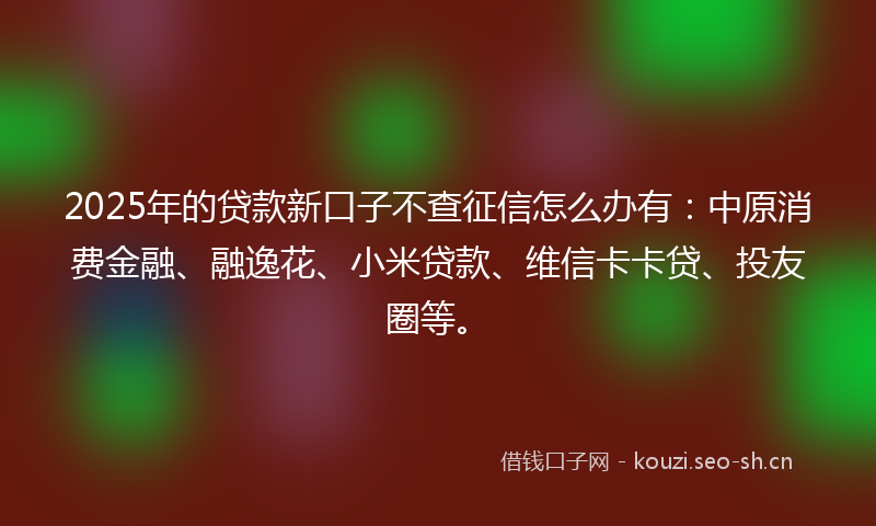 2025年的贷款新口子不查征信怎么办有:中原消费金融、融逸花、小米贷款、维信卡卡贷、投友圈等。