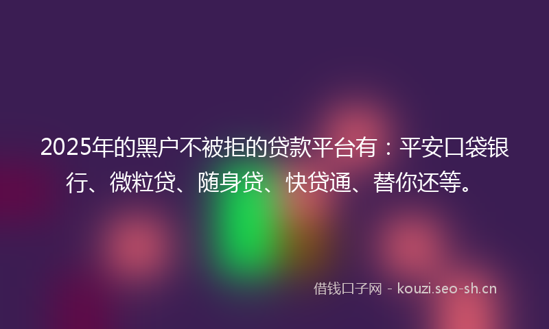 2025年的黑户不被拒的贷款平台有:平安口袋银行、微粒贷、随身贷、快贷通、替你还等。