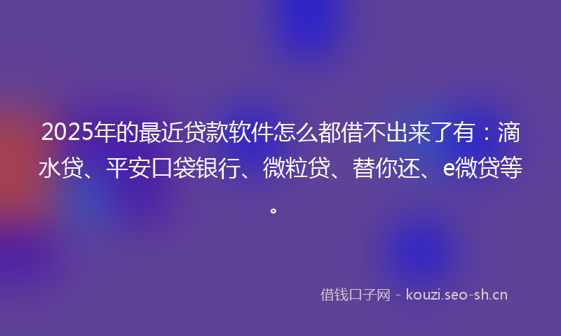 2025年的最近贷款软件怎么都借不出来了有:滴水贷、平安口袋银行、微粒贷、替你还、e微贷等。