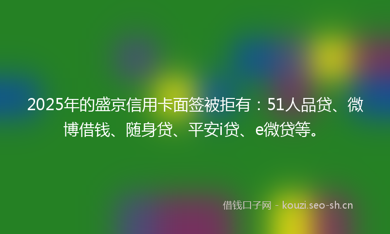 2025年的盛京信用卡面签被拒有:51人品贷、微博借钱、随身贷、平安i贷、e微贷等。