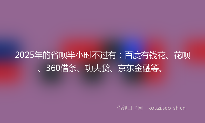 2025年的省呗半小时不过有:百度有钱花、花呗、360借条、功夫贷、京东金融等。