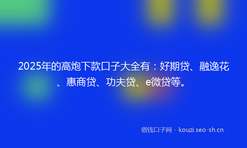2025年的高炮下款口子大全有:好期贷、融逸花、惠商贷、功夫贷、e微贷等。