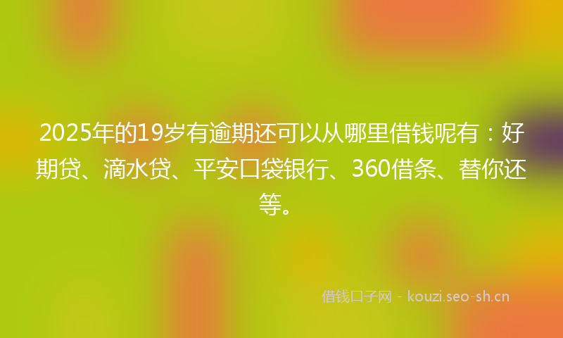 2025年的19岁有逾期还可以从哪里借钱呢有:好期贷、滴水贷、平安口袋银行、360借条、替你还等。