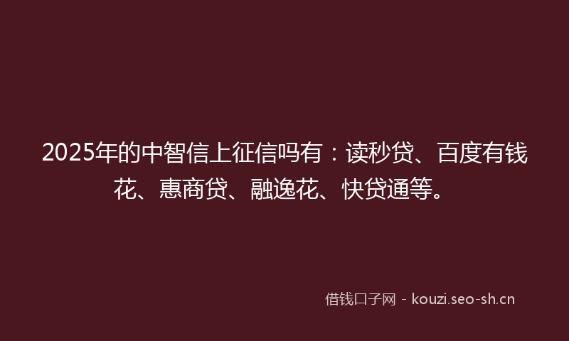 2025年的中智信上征信吗有:读秒贷、百度有钱花、惠商贷、融逸花、快贷通等。