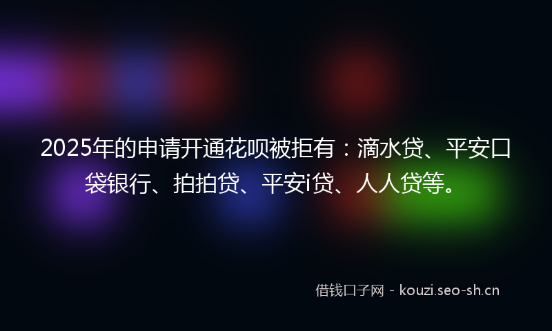 2025年的申请开通花呗被拒有:滴水贷、平安口袋银行、拍拍贷、平安i贷、人人贷等。