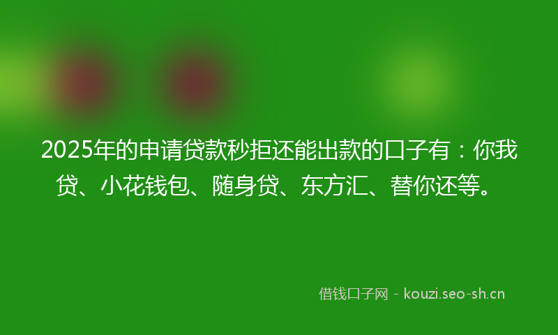 2025年的申请贷款秒拒还能出款的口子有:你我贷、小花钱包、随身贷、东方汇、替你还等。