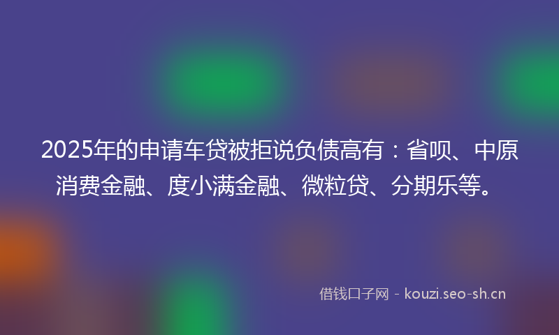 2025年的申请车贷被拒说负债高有:省呗、中原消费金融、度小满金融、微粒贷、分期乐等。