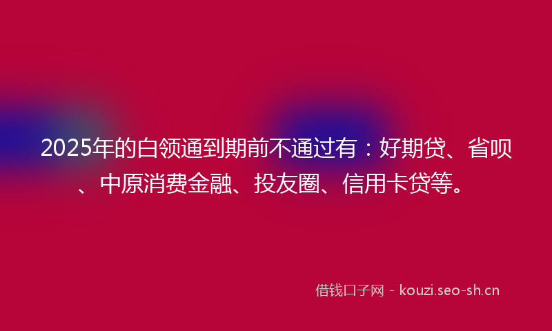 2025年的白领通到期前不通过有:好期贷、省呗、中原消费金融、投友圈、信用卡贷等。