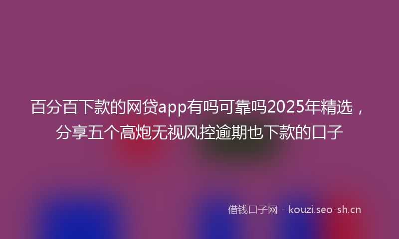 百分百下款的网贷app有吗可靠吗2025年精选,分享五个高炮无视风控逾期也下款的口子