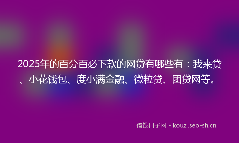 2025年的百分百必下款的网贷有哪些有:我来贷、小花钱包、度小满金融、微粒贷、团贷网等。
