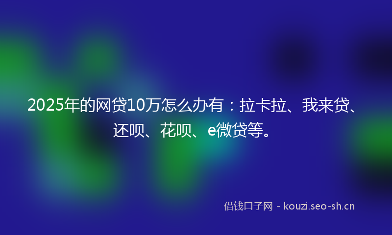 2025年的网贷10万怎么办有:拉卡拉、我来贷、还呗、花呗、e微贷等。