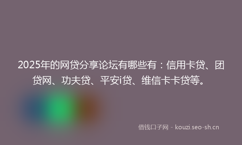 2025年的网贷分享论坛有哪些有:信用卡贷、团贷网、功夫贷、平安i贷、维信卡卡贷等。
