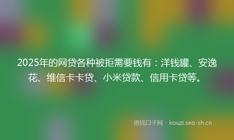 2025年的网贷各种被拒需要钱有:洋钱罐、安逸花、维信卡卡贷、小米贷款、信用卡贷等。
