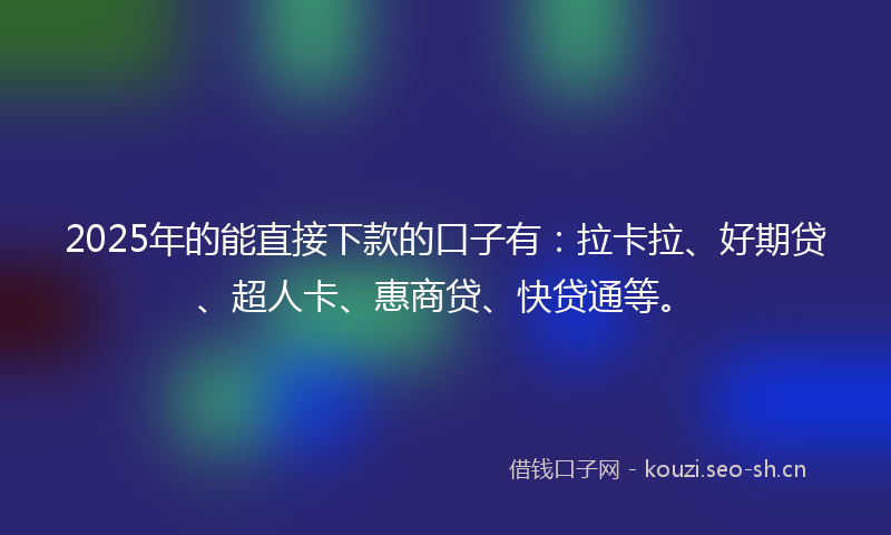 2025年的能直接下款的口子有:拉卡拉、好期贷、超人卡、惠商贷、快贷通等。