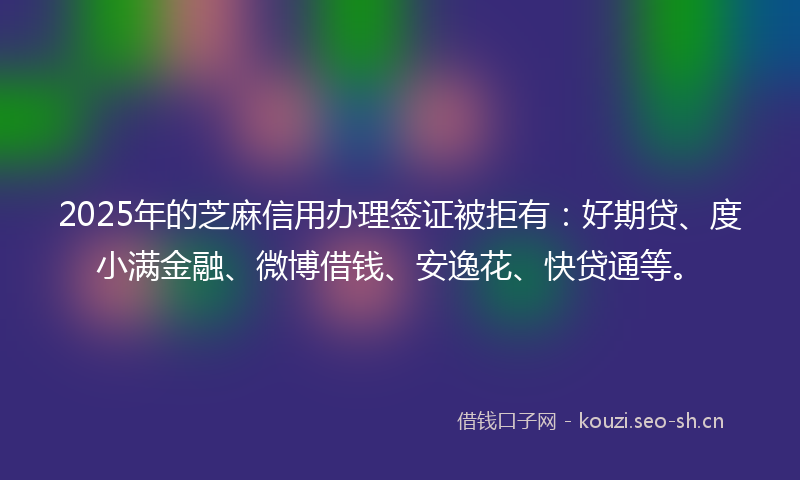 2025年的芝麻信用办理签证被拒有:好期贷、度小满金融、微博借钱、安逸花、快贷通等。