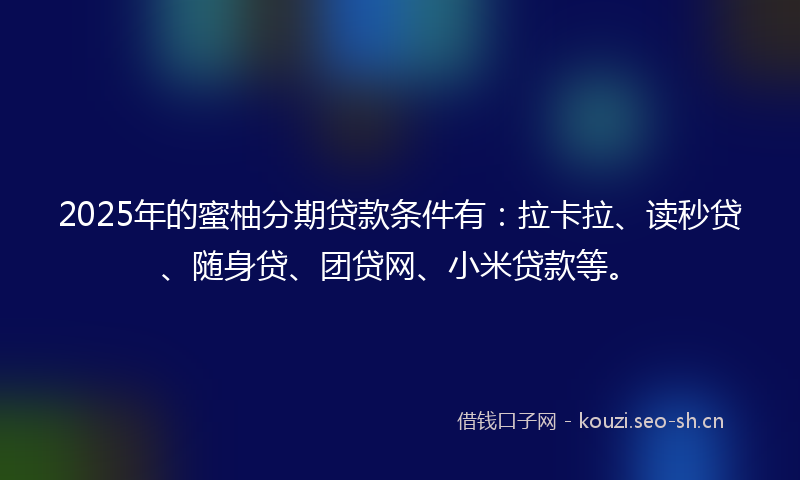 2025年的蜜柚分期贷款条件有:拉卡拉、读秒贷、随身贷、团贷网、小米贷款等。