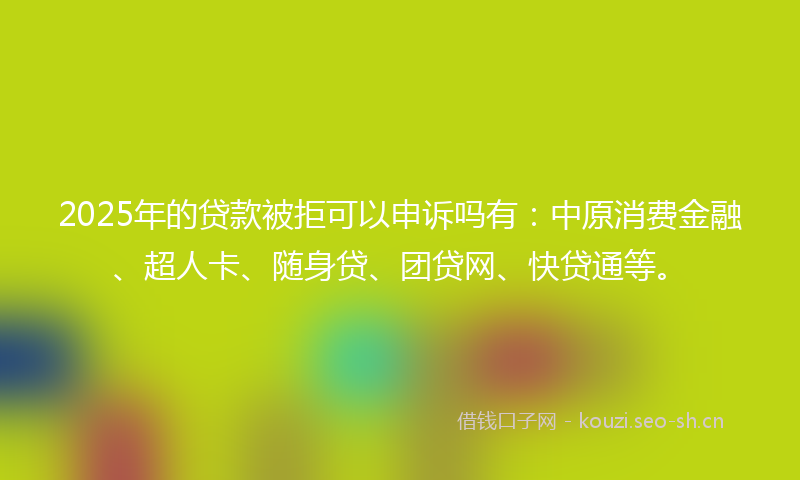 2025年的贷款被拒可以申诉吗有:中原消费金融、超人卡、随身贷、团贷网、快贷通等。