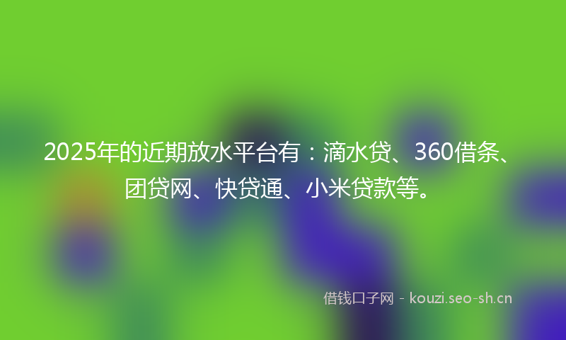2025年的近期放水平台有:滴水贷、360借条、团贷网、快贷通、小米贷款等。