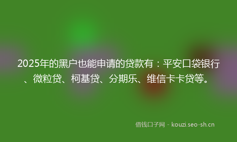 2025年的黑户也能申请的贷款有:平安口袋银行、微粒贷、柯基贷、分期乐、维信卡卡贷等。