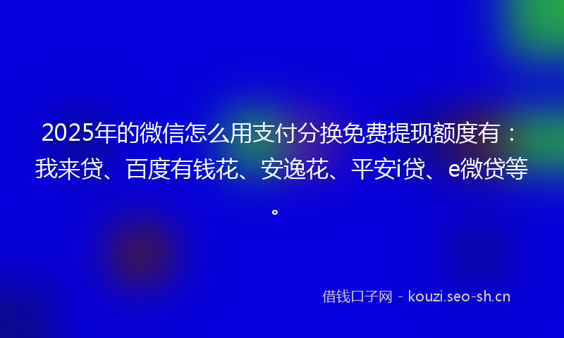 2025年的微信怎么用支付分换免费提现额度有:我来贷、百度有钱花、安逸花、平安i贷、e微贷等。