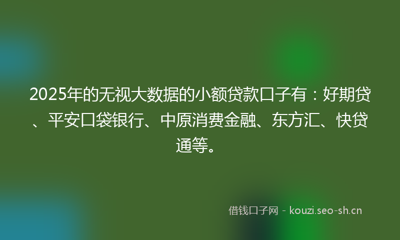 2025年的无视大数据的小额贷款口子有:好期贷、平安口袋银行、中原消费金融、东方汇、快贷通等。