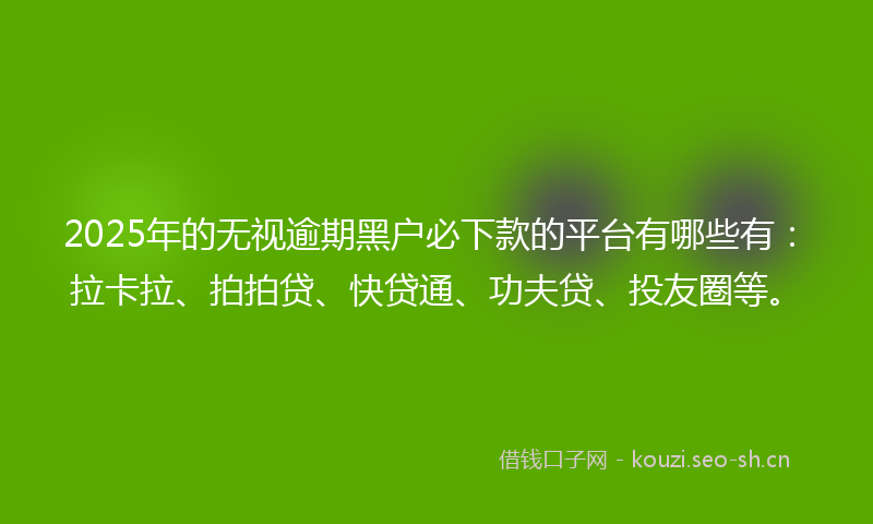 2025年的无视逾期黑户必下款的平台有哪些有:拉卡拉、拍拍贷、快贷通、功夫贷、投友圈等。