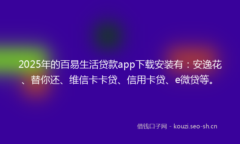 2025年的百易生活贷款app下载安装有:安逸花、替你还、维信卡卡贷、信用卡贷、e微贷等。