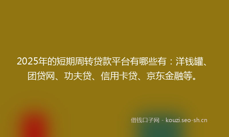 2025年的短期周转贷款平台有哪些有:洋钱罐、团贷网、功夫贷、信用卡贷、京东金融等。