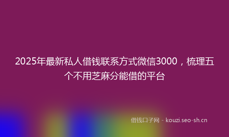 2025年最新私人借钱联系方式微信3000,梳理五个不用芝麻分能借的平台