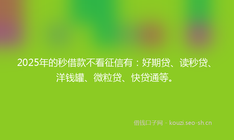 2025年的秒借款不看征信有:好期贷、读秒贷、洋钱罐、微粒贷、快贷通等。