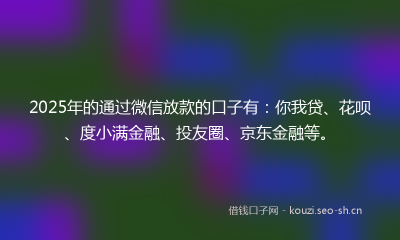 2025年的通过微信放款的口子有:你我贷、花呗、度小满金融、投友圈、京东金融等。