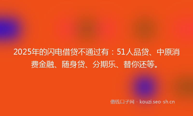 2025年的闪电借贷不通过有:51人品贷、中原消费金融、随身贷、分期乐、替你还等。