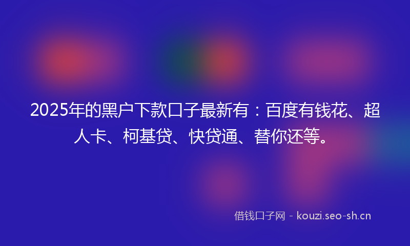 2025年的黑户下款口子最新有:百度有钱花、超人卡、柯基贷、快贷通、替你还等。