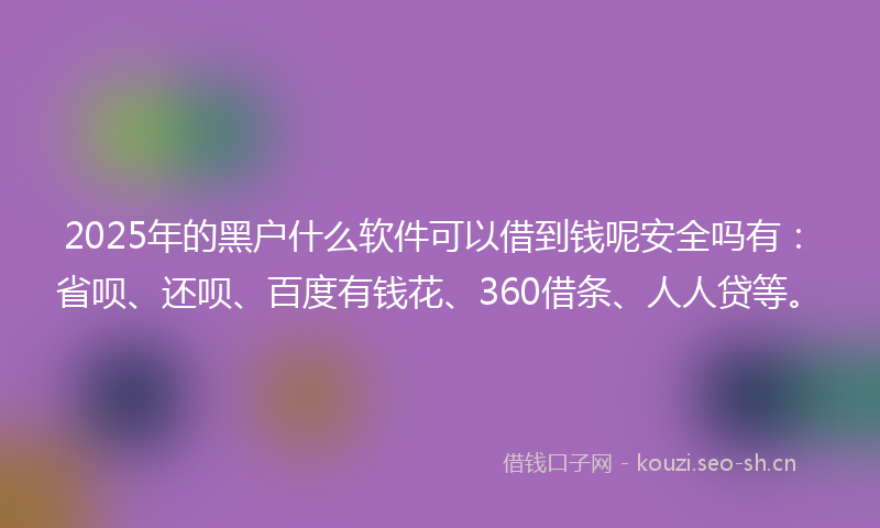 2025年的黑户什么软件可以借到钱呢安全吗有:省呗、还呗、百度有钱花、360借条、人人贷等。