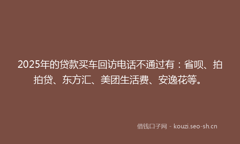 2025年的贷款买车回访电话不通过有:省呗、拍拍贷、东方汇、美团生活费、安逸花等。