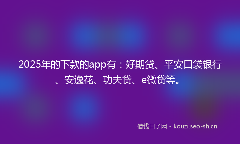 2025年的下款的app有:好期贷、平安口袋银行、安逸花、功夫贷、e微贷等。