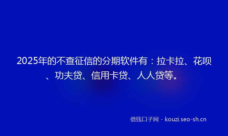 2025年的不查征信的分期软件有:拉卡拉、花呗、功夫贷、信用卡贷、人人贷等。