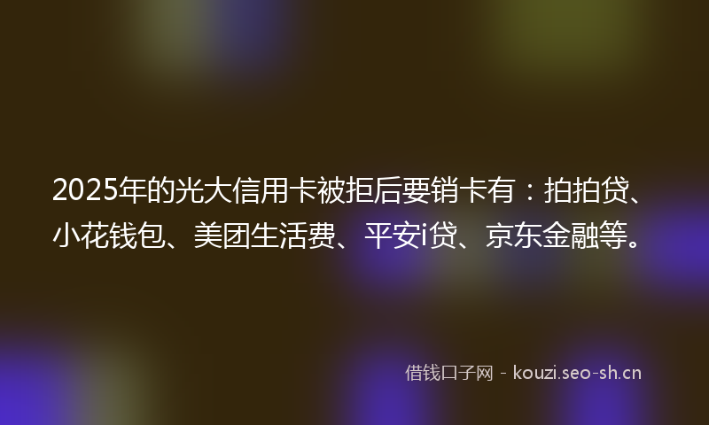 2025年的光大信用卡被拒后要销卡有:拍拍贷、小花钱包、美团生活费、平安i贷、京东金融等。