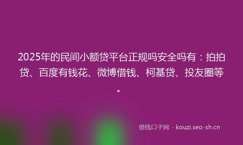 2025年的民间小额贷平台正规吗安全吗有:拍拍贷、百度有钱花、微博借钱、柯基贷、投友圈等。