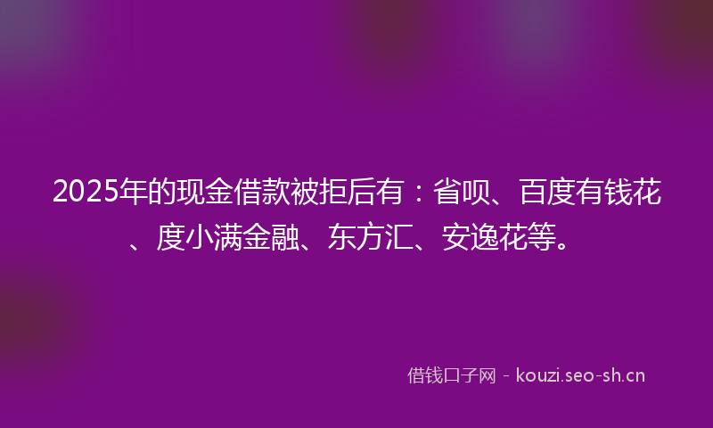 2025年的现金借款被拒后有:省呗、百度有钱花、度小满金融、东方汇、安逸花等。