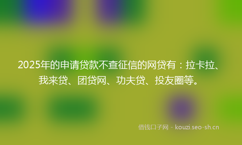 2025年的申请贷款不查征信的网贷有:拉卡拉、我来贷、团贷网、功夫贷、投友圈等。